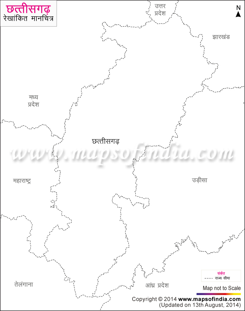 * ऊपर दिया हुआ छत्तीसगढ़ का रेखांकित नक्शा (मानचित्र) राज्य सीमा दर्शाता है|