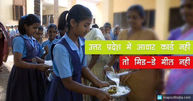 योगी आदित्यनाथ सरकार ने 1 जुलाई 2017 से मिड-डे मील का लाभ लेने के लिए, उत्तर प्रदेश के सरकारी और गैर-सरकारी विद्यालयों के विद्यार्थियों के लिए आधार कार्ड अनिवार्य कर दिया है। मिड-डे मील योजना के तहत सरकार द्वारा कक्षा 1 से 8 तक के छात्रों के लिए निःशुल्क भोजन प्रदान किया जाता है।