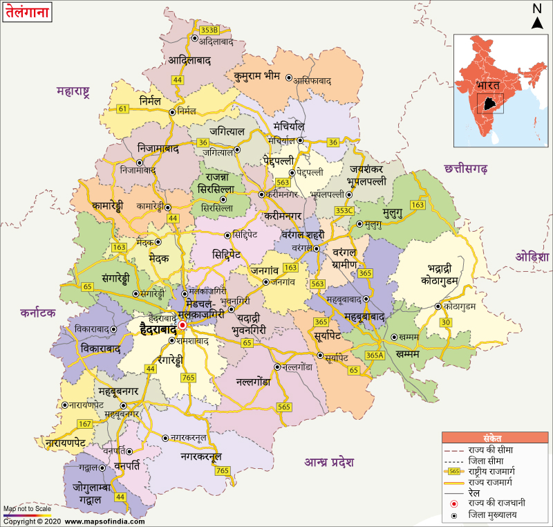 सीमाएँ : तेलंगाना राज्य उत्तर और उत्तर पश्चिम दिशा में